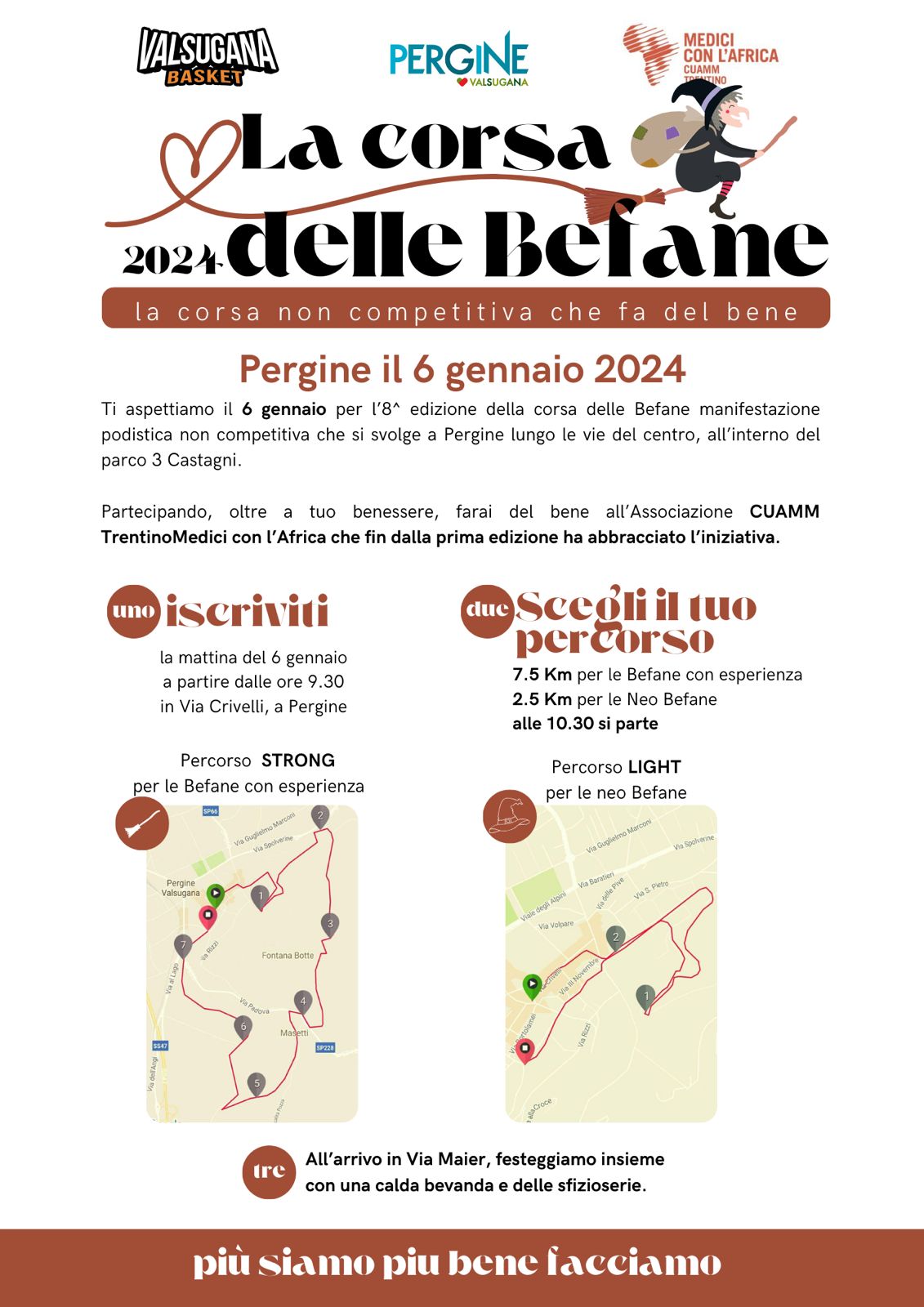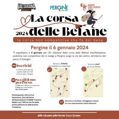 Vi aspettiamo sabato 06 gennaio 2024 per una corsa non competitiva all’insegna della salute e della beneficenza. Il ricavato dall’iscrizione sarà devoluto a sostegno delle nostre attività di CUAMM Trentino!