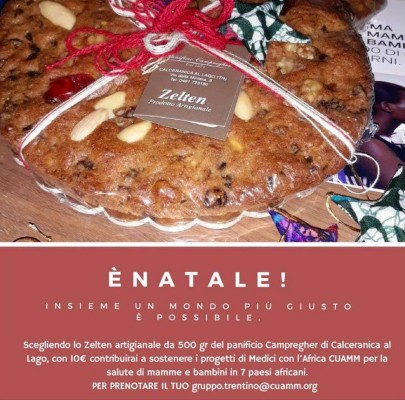 Scegliendo lo Zelten artigianale da 500gr. del panificio Campregher di Calceranica al Lago, con 10 Euro contribuirai a sostenere i progetti di Medici con l’Africa CUAMM per la salute di mamme e bambini.