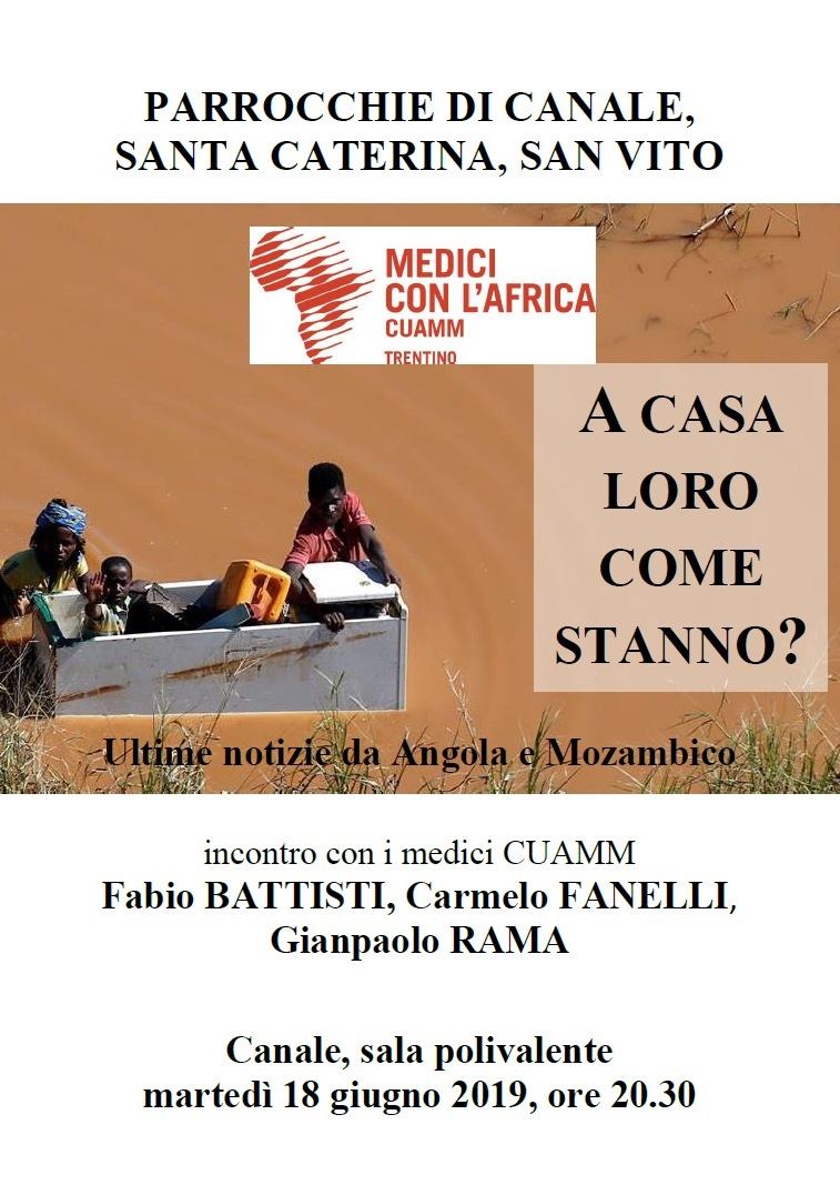 A casa loro come stanno? Ultime notizie da Angola e Mozambico   Martedì 18 giugno 2019 ore 20.30 CANALE di Pergine Valsugana (Trento), sala Polivalente  Incontro con i medici Cuamm Fabio BATTISTI, Carmelo FANELLI, Gianpaolo RAMA organizzato da PARROCCHIE DI CANALE, SANTA CATERINA, SAN VITO. 61828356_2194360997352231_1718680864855949312_n