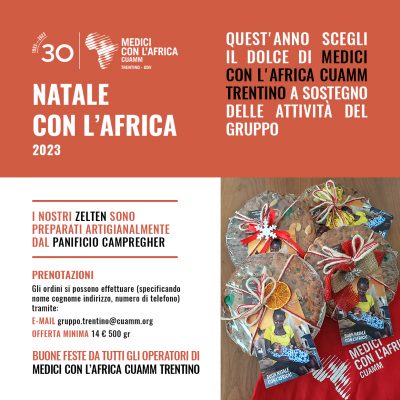 Anche per questo Natale, riproponiamo l’offerta dei Zelten prodotti artigianalmente dal panificio Campregher (Calceranica al Lago). Con un’offerta minima di € 14 si potranno sostenere i progetti di Medici con l’Africa Cuamm Trentino.